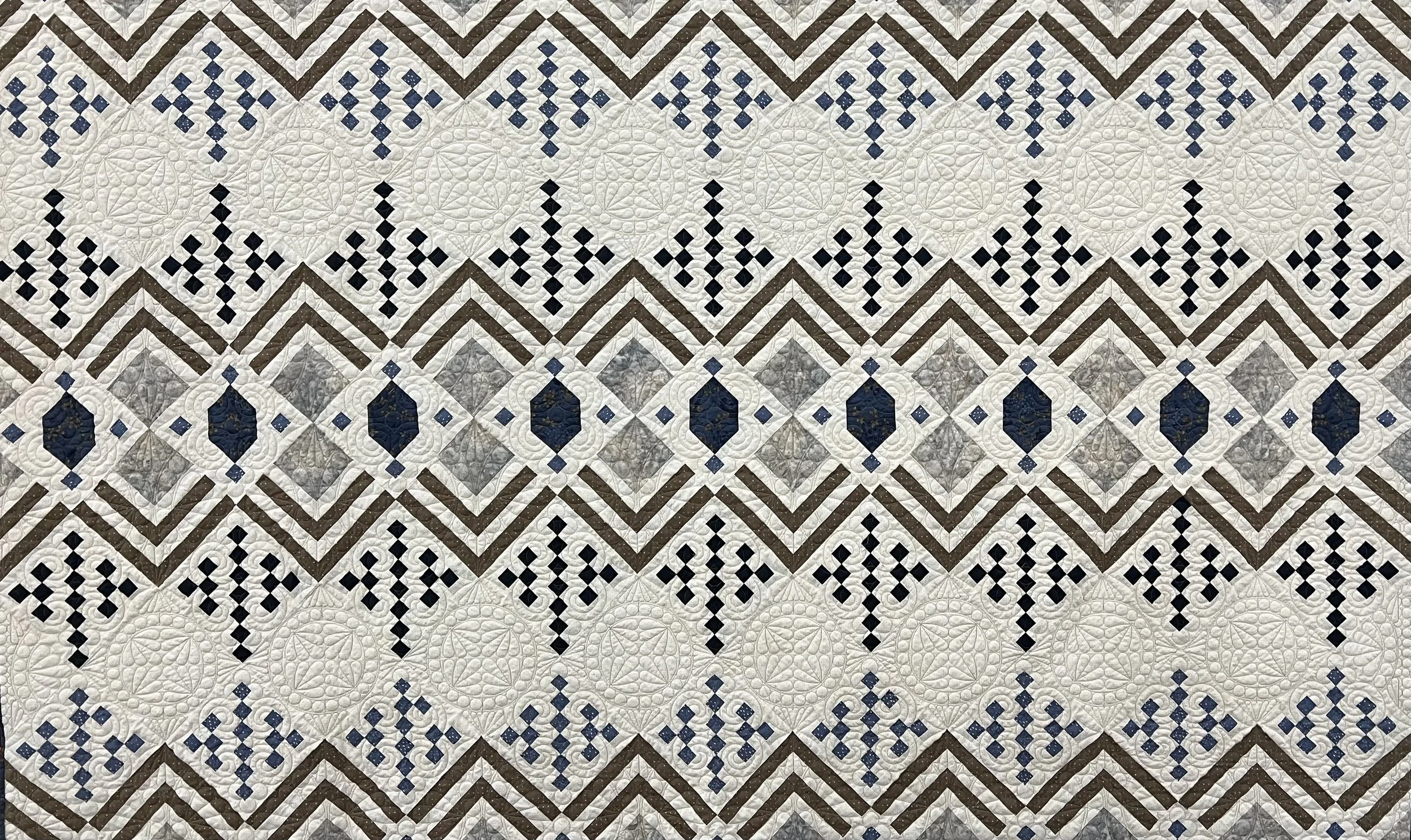 The 2025-26 raffle quilt was revealed during the October meeting. Titled “Diamonds are a Girls Best Friend”, the quilt was pieced by Karen Levay and quilted by Jane Pitt. Susan Colston served as a fabric consultant. The pattern name is Deco by Lo and Behold Stitchery.
