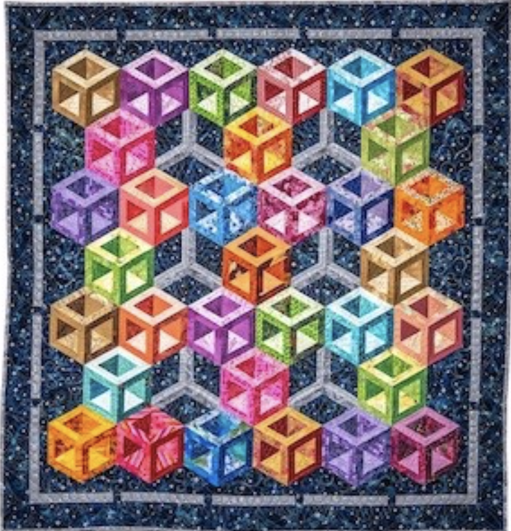 Join our Tuesday night (May 5) Guild presenter Claudia Lash for her intriguing hands-on workshop covering all aspects of 3-dimensional quilt construction. Claudia will guide us through the thoughtful selection of fabric colors (scraps or 10" squares) and careful cutting methods to achieve 3D floating cubes. Something new for your quilting toolbox!